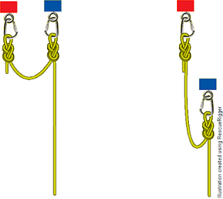 A partir dos dois pontos de ancoragem que não são estruturais ou robustos, instalamos os mosquetões e dentro destes passamos uma fita ou cordim fechado em anel. Após isso unimos a parte superior com o mosquetão inferior, realizando antes uma pequena alça de segurança. Esse sistema poderá ser tracionado em qualquer direção que equalizará igualmente o peso da carga entre os dois pontos.